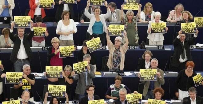 HacÃa ya tiempo que no hablábamos de esas leyes que pretenden regular internet y que se convierten en una manera de tener bajo llave la libertad de expresión de los ciudadanos, que habÃan encontrado en la red el medio más voraz para lanzar sus opiniones y conseguir que el mundo hablase de lo que a ellos de verdad les importa. Y si en España tuvimos la nuestra que se aprobó por detrás, casi sin previo aviso que afectaba sobre todo a la descarga de contenidos, en EE.UU tuvieron a SOPA, en Europa nos quedaba ACTA que ataca directamente a las publicaciones online.