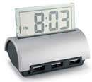 Esto que a simple vista parece un simple reloj en realidad es un hub USB, el cual dispone de 3 puertos a los que podemos conectar cualquier dispositivo como por ejemplo un móvil, una cámara digital, etc. El visor del reloj se alimenta de la misma energía que provee el puerto USB.