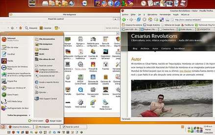 Existen paquetes como el Uxtheme que permiten a Ubuntu tener un aspecto de Windows XP como la imagen siguiente:
